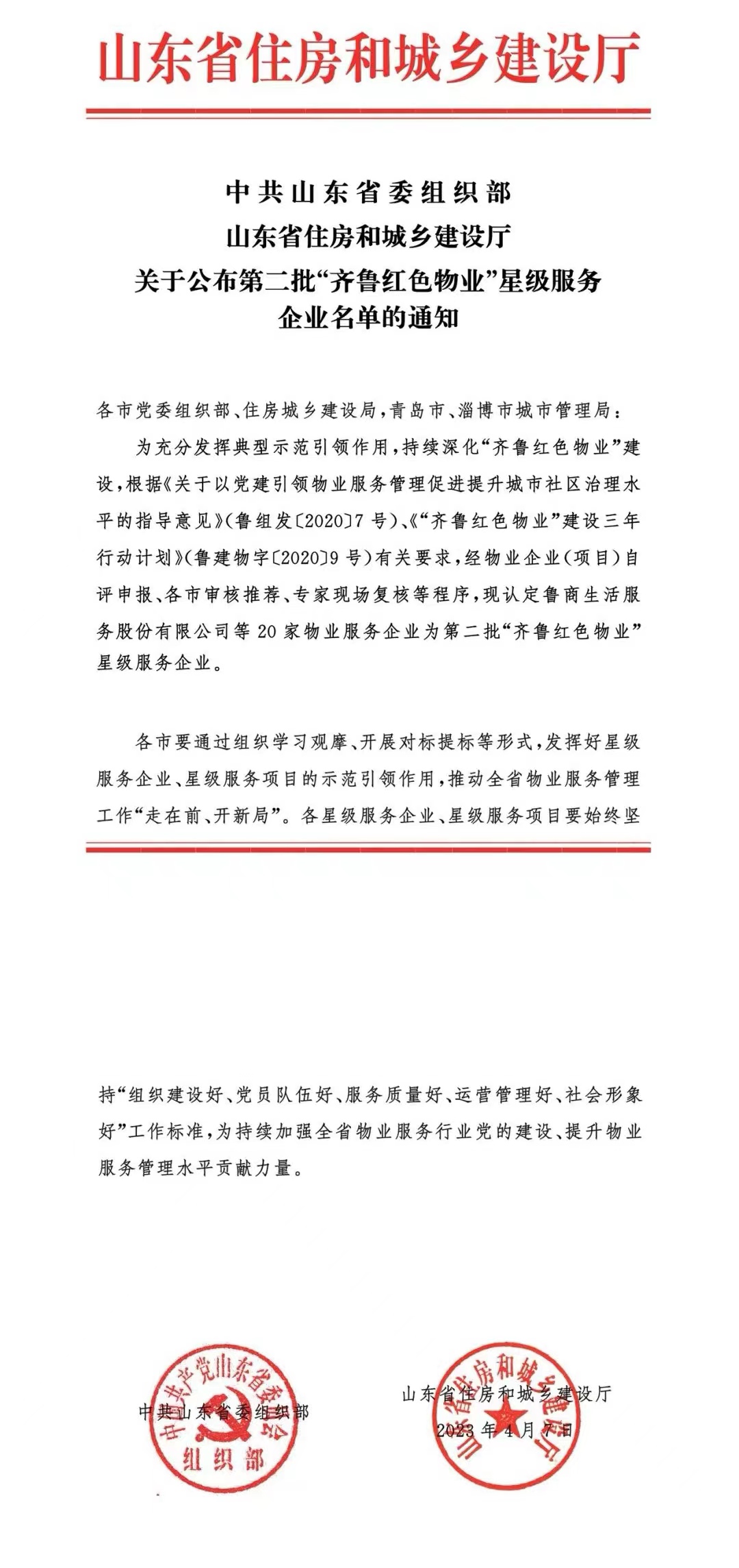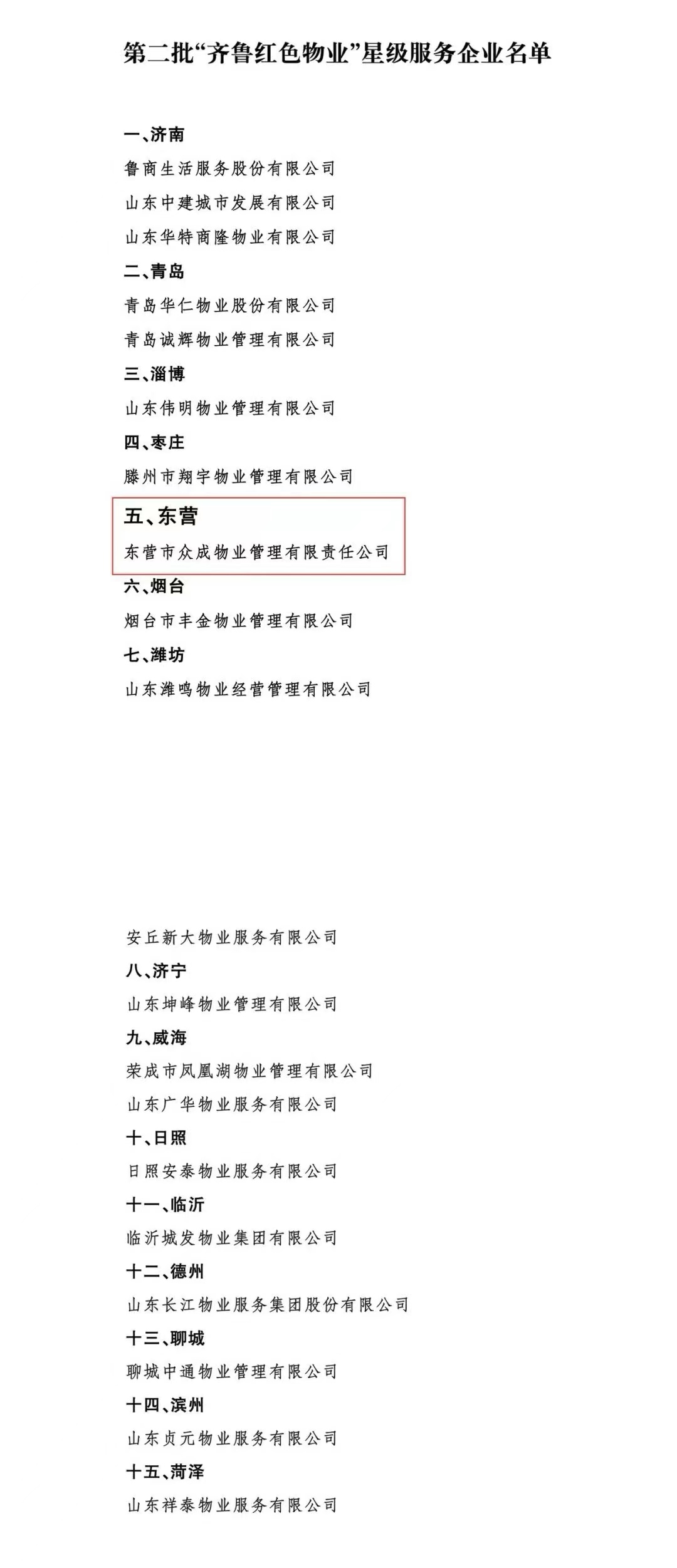 祝贺众成物业成为第二批“齐鲁红色物业”星级服务企业