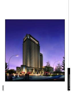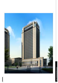 本项目分为综合楼和住宅楼两部分,其中综合楼一栋,地上24层,地下2层,用地面积9294.4㎡,建筑占地面积2310㎡,总建筑面积39580㎡(地上32900㎡,地下6680㎡),容积率3.93,建筑密度27.6%,绿地率28%,停车位264个。住宅三栋,地上11层,地下2层,用地面积9471.4㎡,建筑占地面积2059㎡,总建筑面积21645㎡(地上16100㎡,地下5545㎡),居住户数148户,容积率1.7,建筑密度22.1%,绿地率38%,停车位126个。